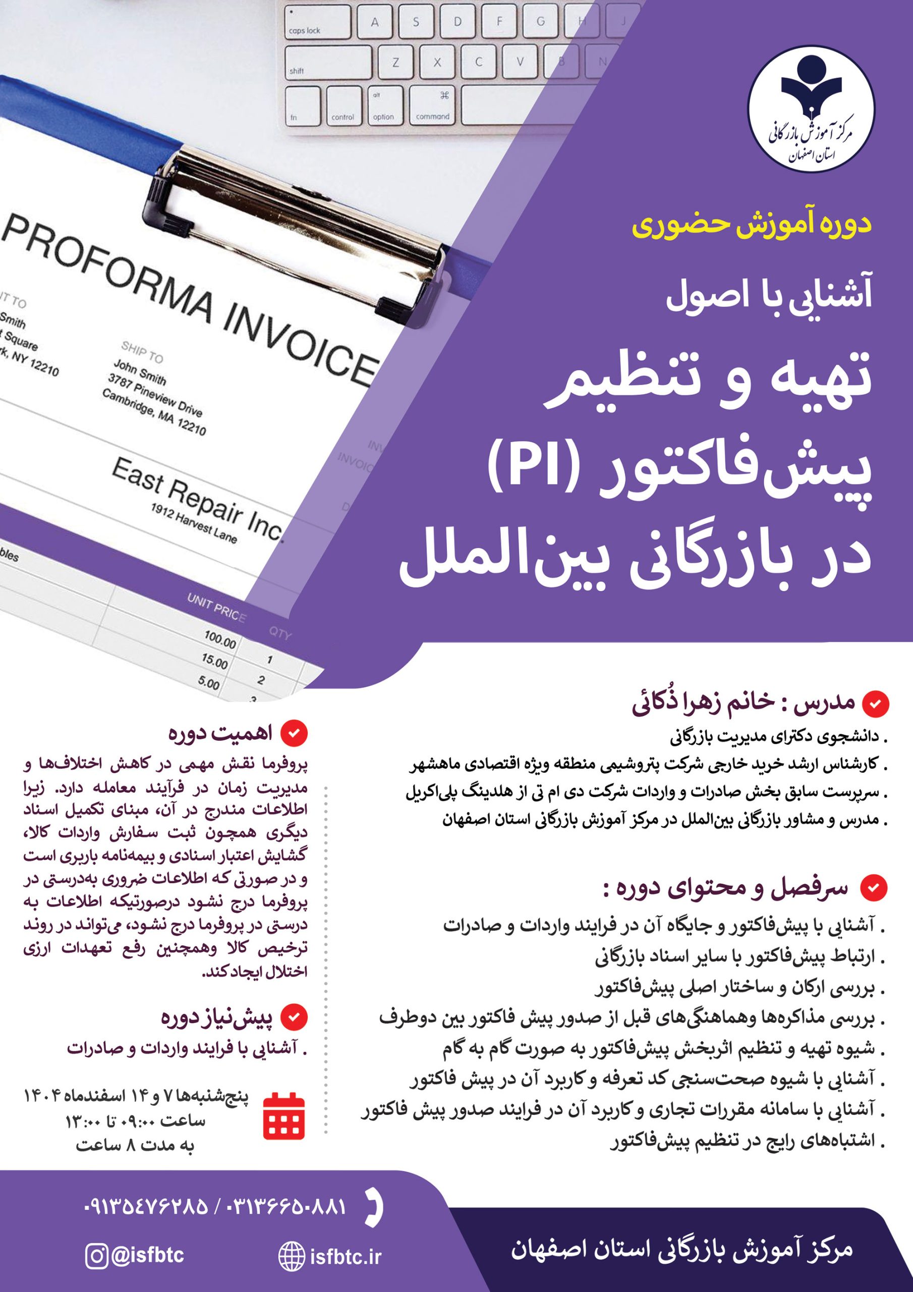 . مدرس و مشاور بازرگانی بینالملل در مرکز آموزش بازرگانی استان اصفهان